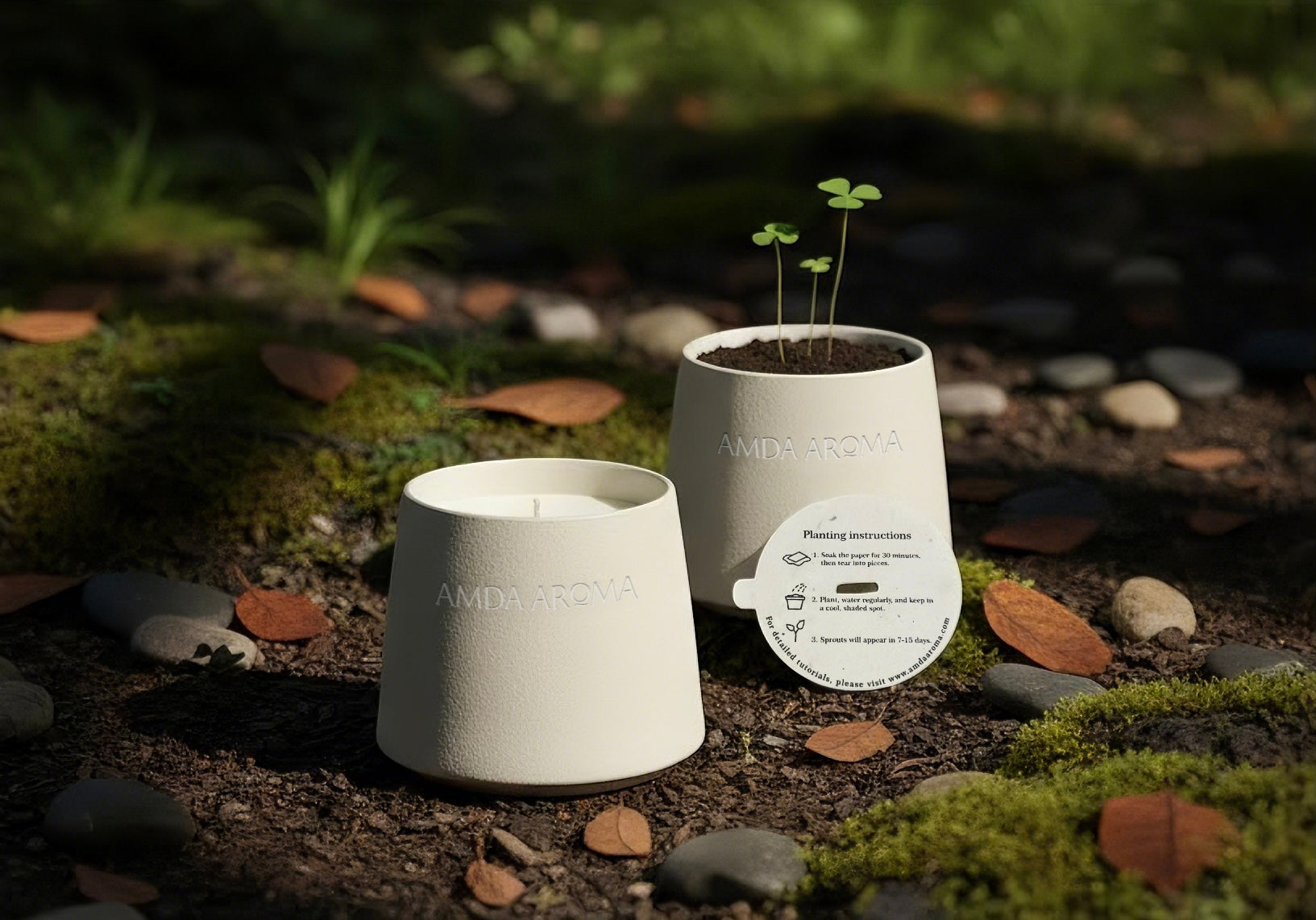 Sustainability is at the heart of our craft. Every candle jar is refillable and reusable, transforming into a planter with our plantable dust covers, allowing you to grow the very essence of its scent.
